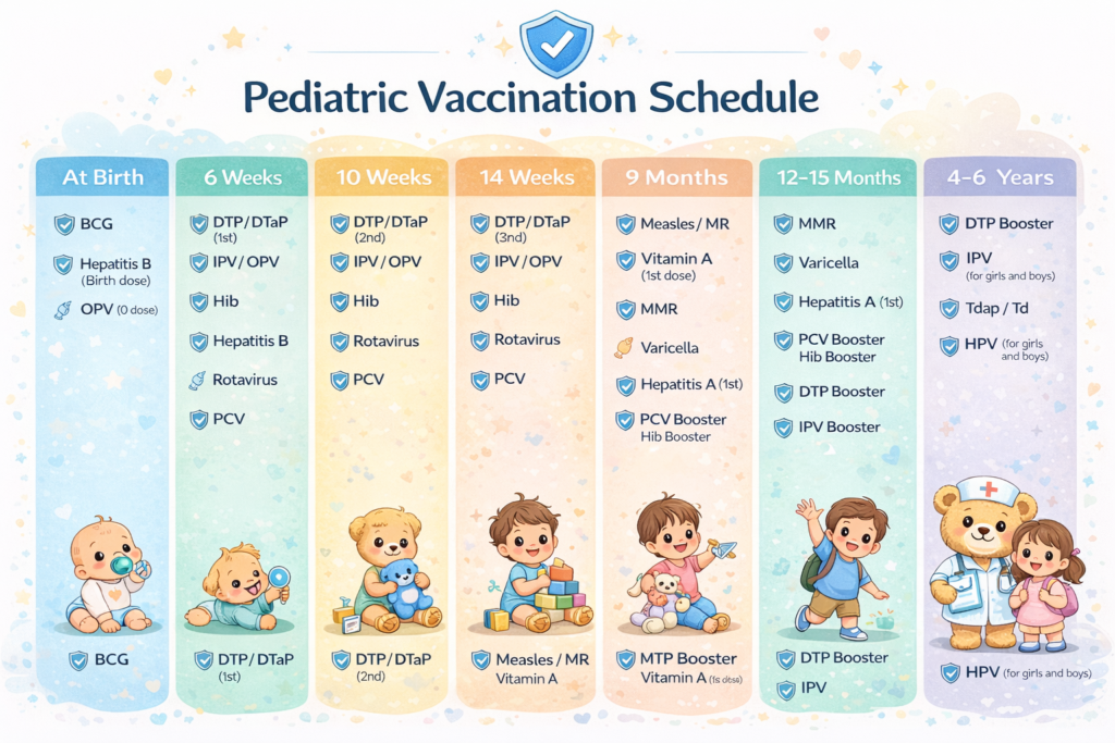 Neonatal & Infant Care Specialized care for newborns and infants. Newborn Screening & Early Detection Early screening for developmental and congenital conditions. Immunization & Disease Prevention Complete vaccinations as per recommended guidelines.